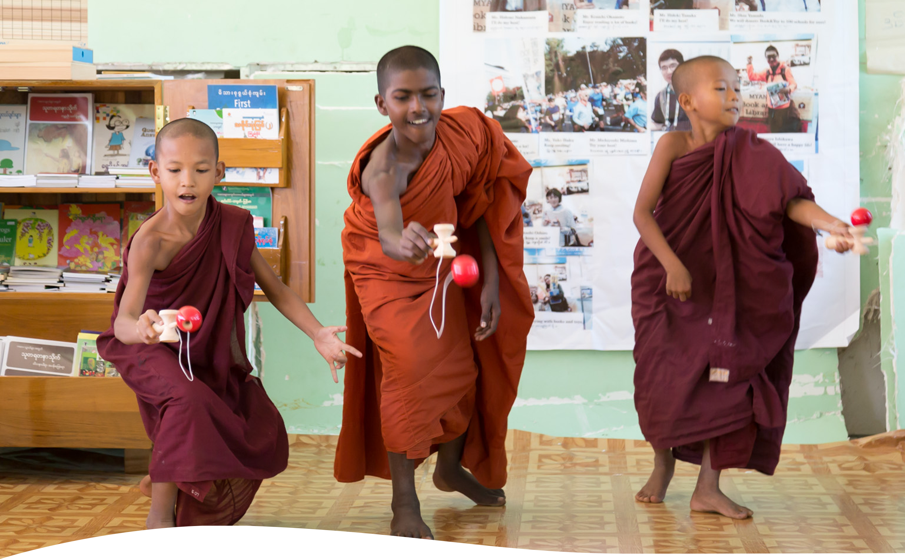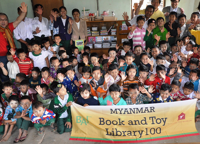 玩具及び絵本、児童図書をセットにし、ミャンマー各地の小学校に寄贈。農村部や貧困層の子どもが通う学校に新たな学びを届ける。2016年より開始し110校以上へ寄贈を実施。 また、2018年からは移動型おもちゃ美術館を最大都市ヤンゴンで定例開催を開始。(現在は国内情勢悪化のため活動休止中)