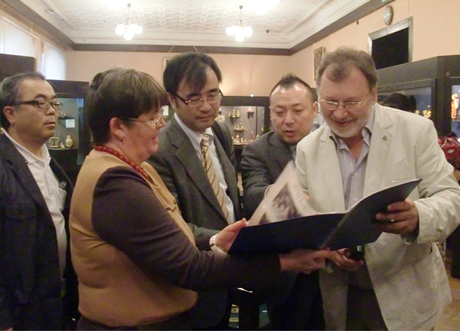 おもちゃ美術館の設立者の多田信作が交流のきっかけを作ったロシアとの国際交流。郷土玩具、伝統人形などを1980年代に寄贈して以来止まっていた関係を30年ぶりに再開。マトリョーシカのルーツが日本の伝統人形であることなど縁の深い国同士が、次世代に向けて新たなる玩具文化交流をスタートしました。
