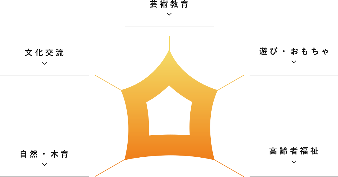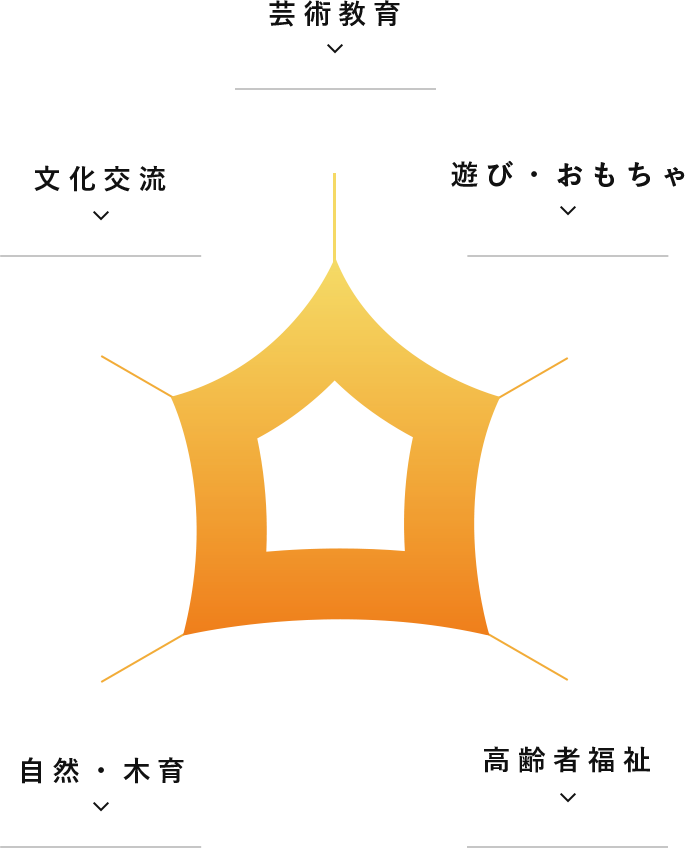 芸術と遊び創造協会では、「芸術」と「遊び」、「おもちゃ」によって、親子などの多世代交流を促す活動を推進しています。遊びのコーディネートや手作りおもちゃの指導、人材育成事業を通じ、日本に良質な遊びを広めることで日本全国のさまざまな地域が豊かになる支援をしています。